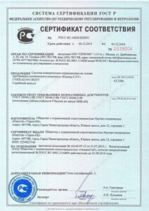 Сертификат соответствия системы менеджмента качества требованиям ГОСТ Р ИСО 9001-2015.